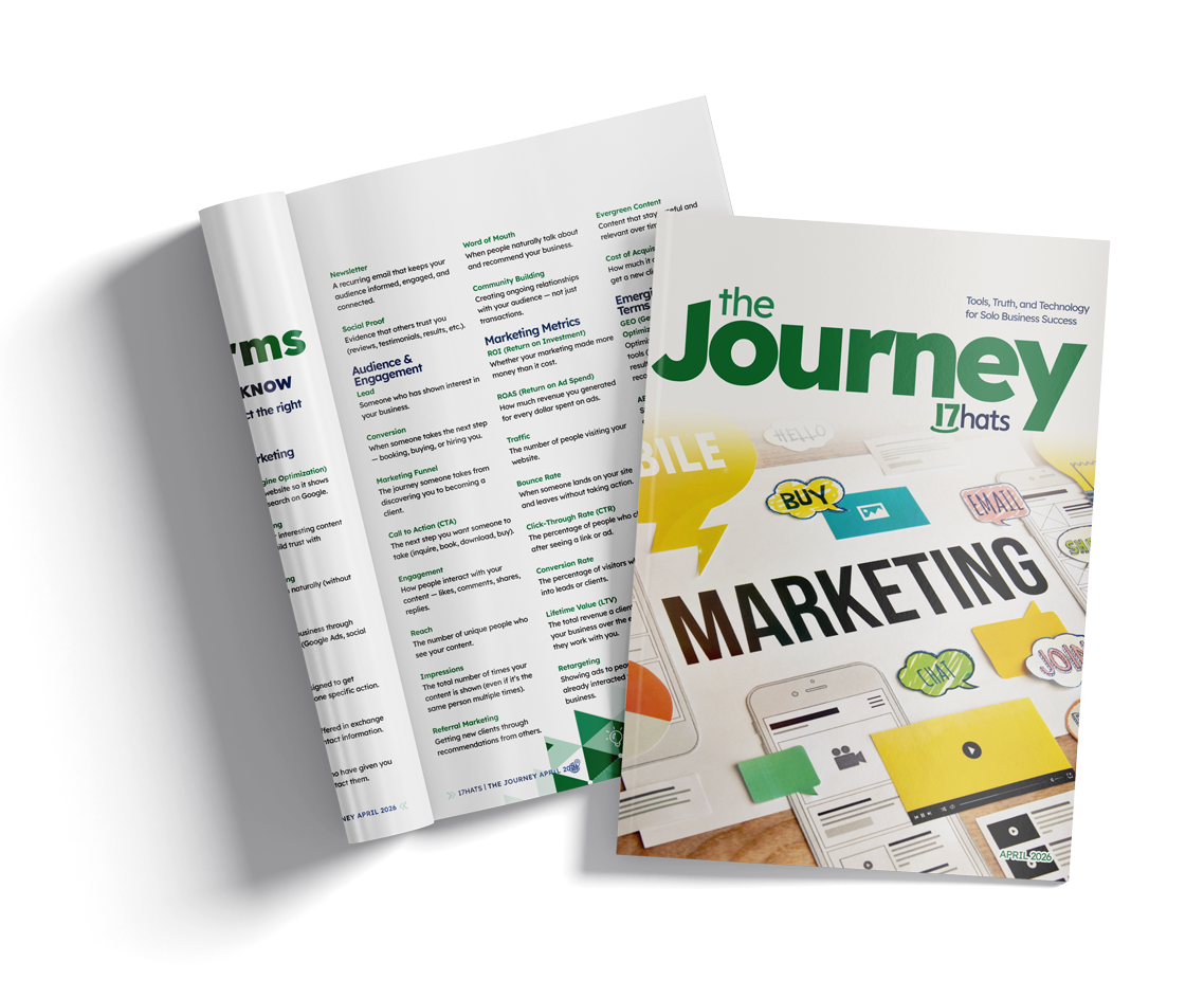The Journey is 17hats’ magazine for business-minded solopreneurs — packed with stories, strategies, and inspiration to help you grow and thrive in your business.