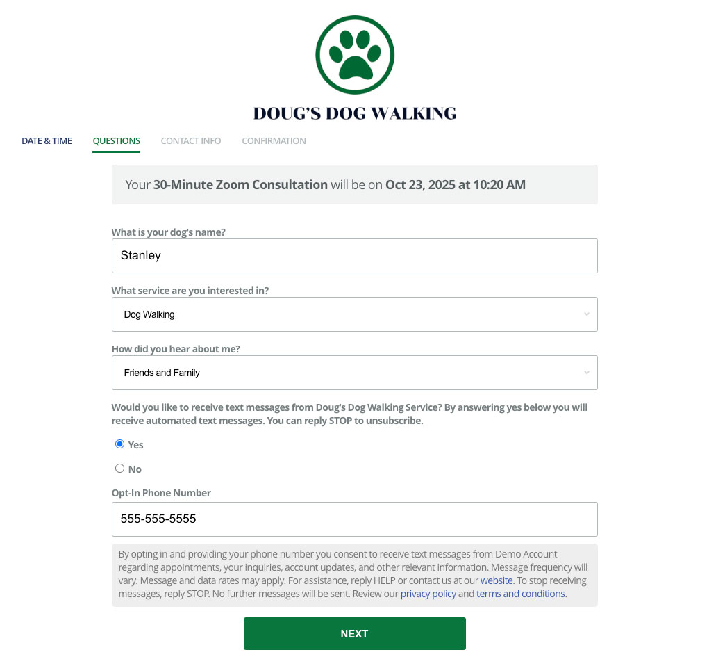 Add your texting opt-in questions to your Lead Capture Forms, Questionnaires, and Online Scheduling.
